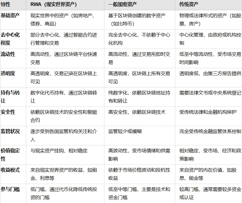 RWA, 全称为 Real World Assets,直译为“现实世界资产”,指的是在区块链或Web3生态系统中,以数字化、代币化的方式来表示和交易现实世界中的资产。 这些资产包括但不限于房地产、商品、债券、股票、艺术品、贵金属、知识产权等。RWA 的核心理念是通过区块链技术,将传统金融资产带入去中心化金融(DeFi)生态系统,从而实现更高效、更透明、更安全的资产管理和交易。