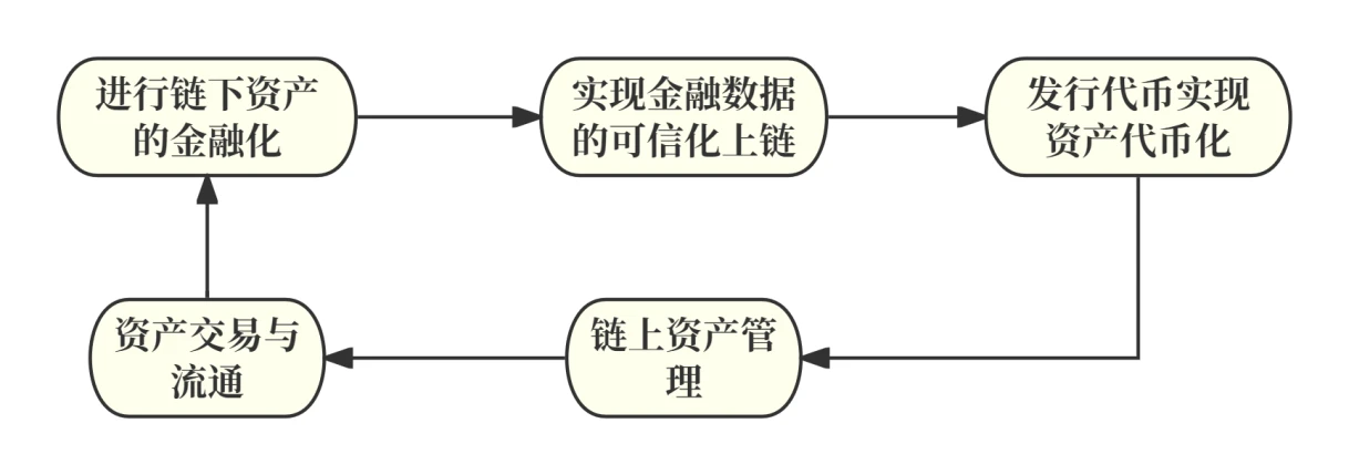 实际上,在 RWA 的框架下,代币化并不仅仅是指在区块链上发行一个代币的简单过程,它包含了一整套复杂的流程,这些流程涉及到链下真实世界中的资产关系。代币化的过程通常包括:底层资产的购买与托管、建立代币与这些资产之间的法律关联框架,以及最终的代币发行。通过这种代币化过程,链下的法律法规和相关产品操作流程被结合起来,使得代币持有者在法律上对底层资产拥有索取权。