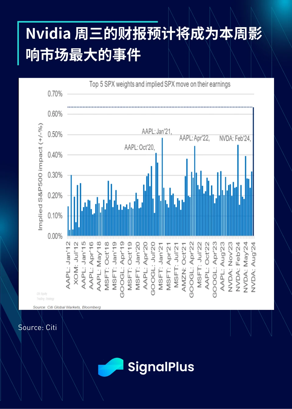 在这个预期已经被确定的情况下,市场现在将重新关注每周的失业救济申请数据以及每月的非农就业数据,除非通胀连续几个月急剧上升,否则通胀数据将退居次要地位。因此,本周的交易活动可能会相对平静,Nvidia 周三收盘后的财报发布可能会成为影响市场最大的事件,同时市场可能会淡化周五 PCE 数据的重要性,而密大的消费者信心指数仍可能会受到一些关注,用以评估消费者支出的情况。