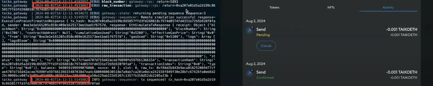 基于预确认简单地使用一些 L1 验证者为 L2 用户提供预确认。目前,基于预确认在 Helder 测试网上成功运行,现在可以在 Taiko 上进行闪电般快速的交易(Gattaca 的演示中为 20 毫秒,Arbitrum 中约为 260 毫秒 )。