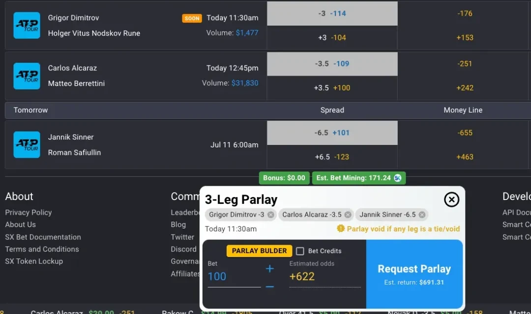 在 Web3 体育博彩平台 SX Bet 上实施的点对点组合投注系统,允许用户创建定制化的投注,流动性由自动化市场做市商提供。这一创新为各个领域的预测市场带来了更富有动态和吸引人的前景。