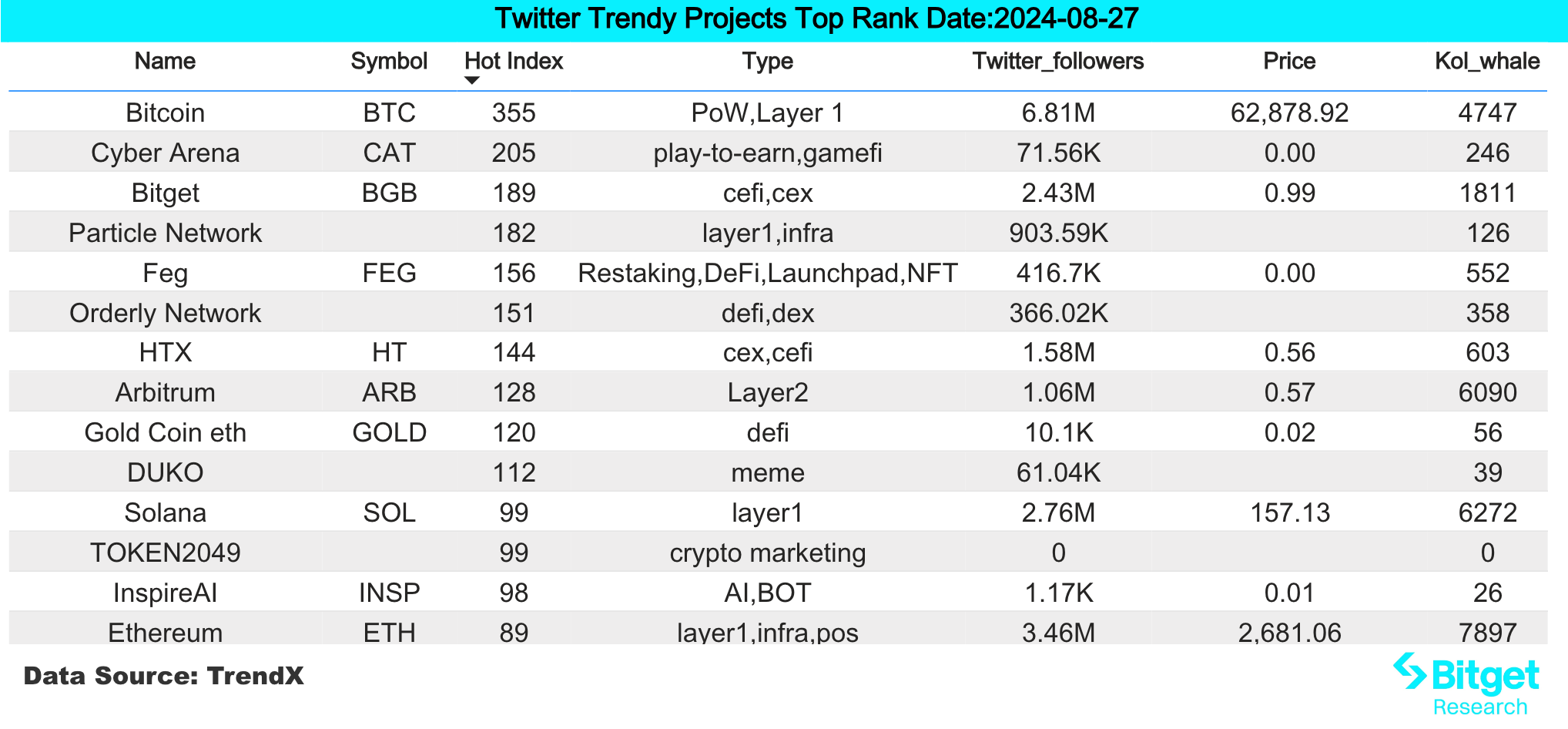 近期与 Crypto 相关的名词 AI、FET 等上榜谷歌热搜,AI 赛道项目是欧洲、英文区用户关注的核心板块,市场关注度比较高;