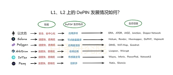 虽然 Solana 目前关注度非常高,但一些知名的 DePIN 项目开始采用 Arbitrum 和 Polygon 作为基础链。