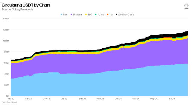 TON 网络上流通的 USDT 约为 7.3 亿美元,其中大部分被锁定在 TON/USDT 资金池中。这仅占 USDT 流通供应量的 0.61% 。