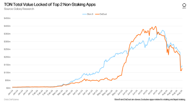 截至撰写本文时,TON DeFi(不包括质押和流动性质押应用程序)总 TVL 约为 3 亿美元。