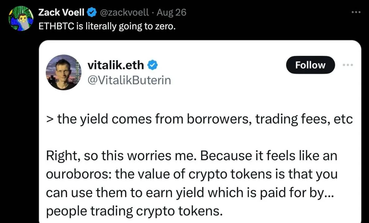 也许这不是一个受欢迎的观点,当高层人士甚至 Vitalik 本人受到公开挑战时,我对 ETH 更加看好。