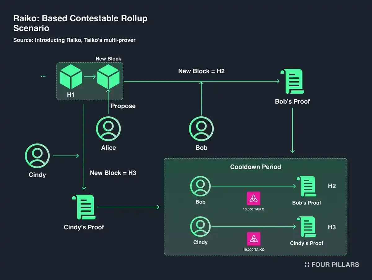 尽管 BCR 具有这些优势,但其设计也存在一个潜在的缺点:当竞争频率较低时,证明者可能缺乏活动。证明者的结构需要大量的竞争才能产生利润,因此在竞争较少的环境中,他们可能更倾向于不参与。为了应对这个问题,Taiko 实施了对不同 Rollup 证明系统的动态调整,从而解决这个问题。