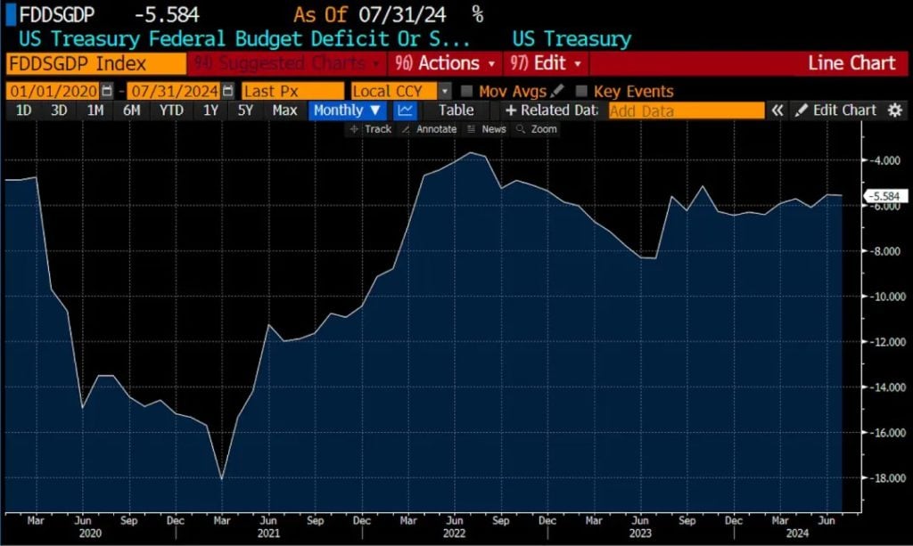 美国政府赤字创下历史新高,部分原因是发行债务的成本尚未足够高,无法迫使政客们提高税收或减少福利以平衡预算。
