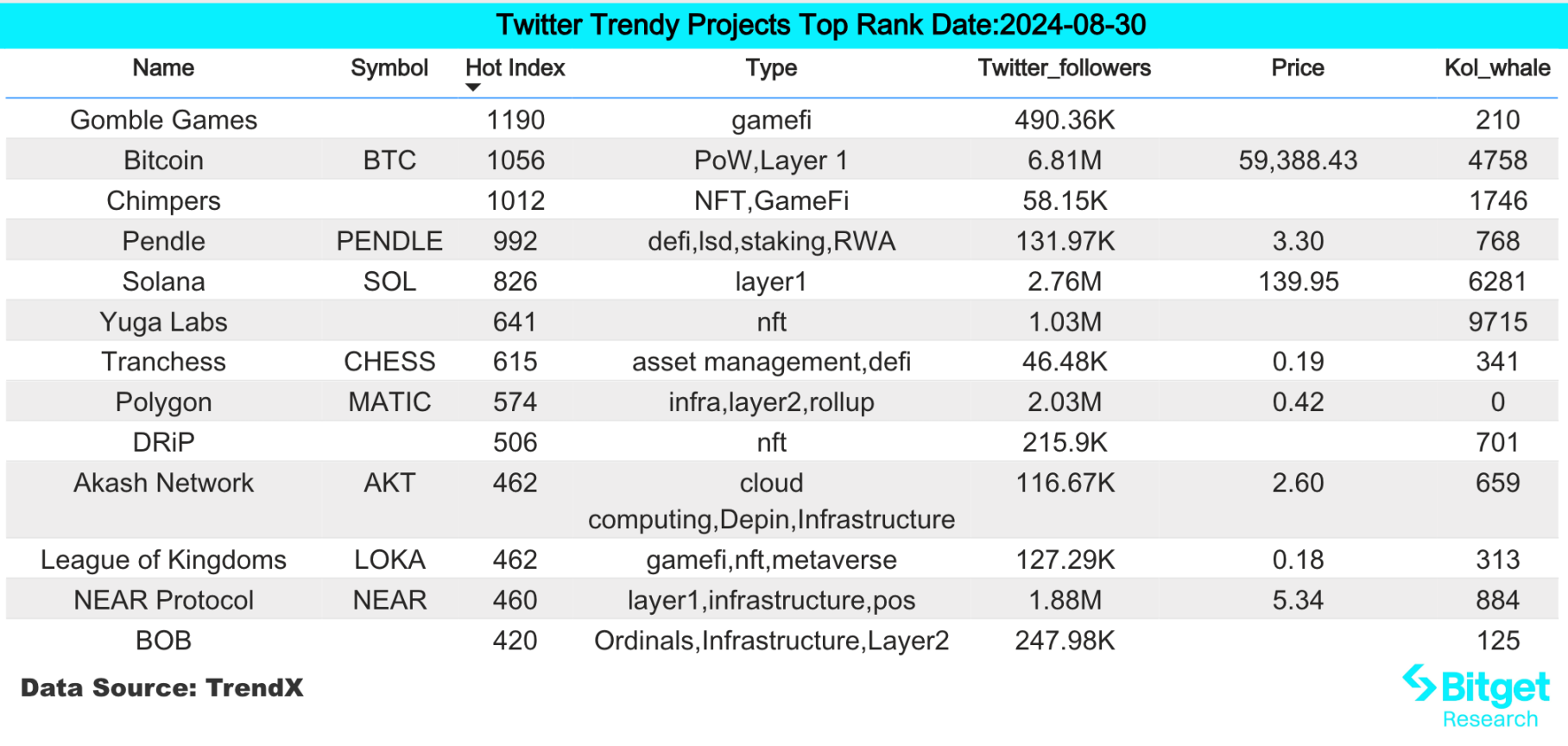 BWB:Bitget Wallet 代币,总市值仅有 5 亿美金,钱包赛道在未来成长性良好,适合长期持有者。