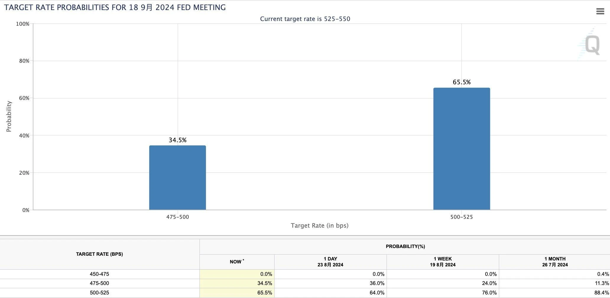 鉴于美联储主席鲍威尔的最新表态,自加息周期开始以来,联储首次传递出鸽派信号,显示其重点正在从控制通胀转向支持经济增长和就业。降息周期的趋势已逐步形成,预计将刺激杠杆资金回流。目前,CME 美联储观察工具显示, 9 月降息 25 个基点的可能性最大。然而, 8 月 CPI 和非农数据即将公布,若数据超出预期, 9 月降息 50 个基点的概率将上升。