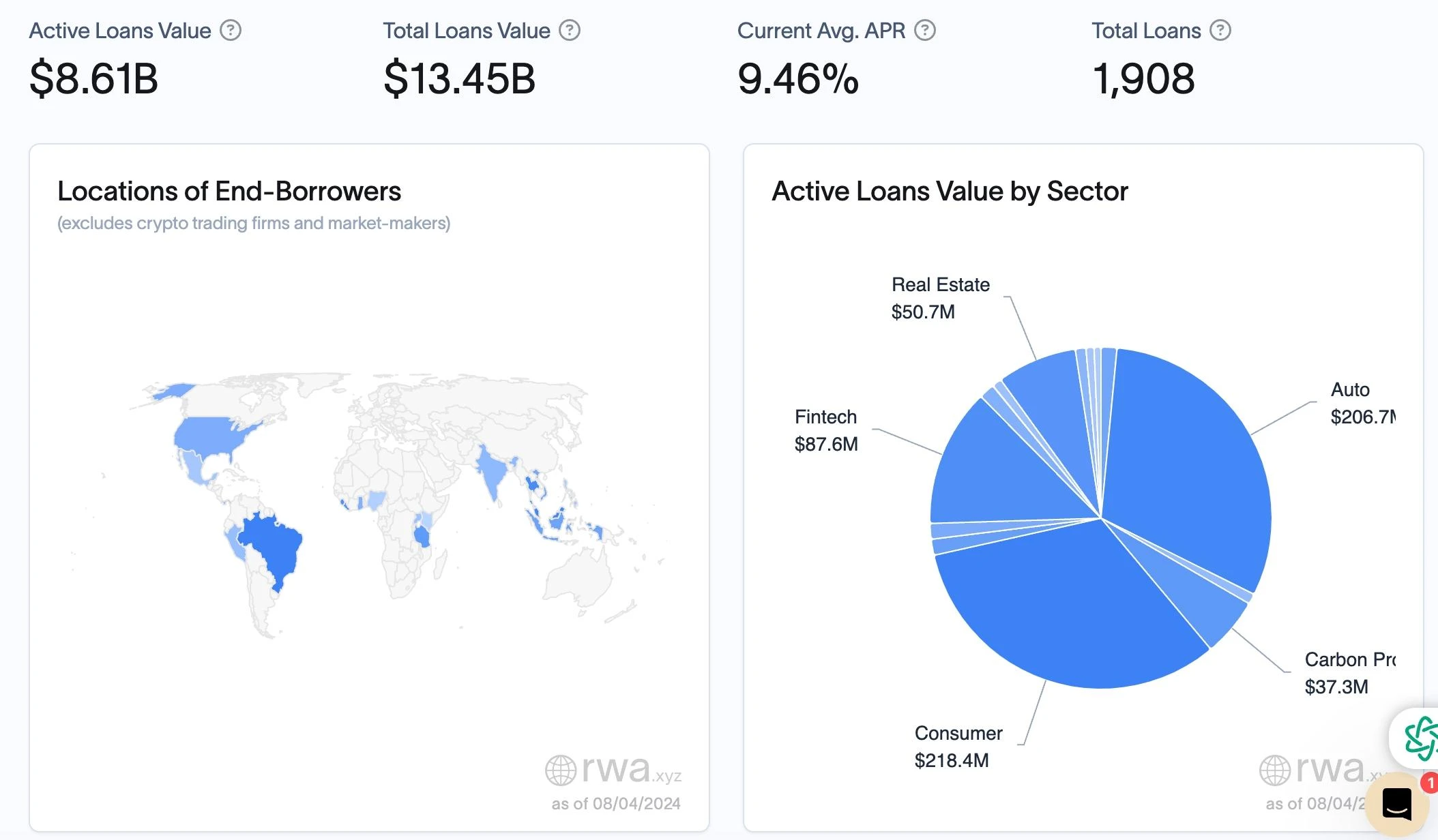 在传统金融中,私人信贷是一个价值 1.5 万亿美元的巨大市场。加密信贷协议已经将超过 130 亿美元的贷款代币化,目前有超过 80 亿美元贷款给现实世界的企业,为链上贷方创造了回报。对于链上交易者来说,私人信贷因其更高的收益潜力而具有吸引力。例如,通过 Centrifuge 等协议借出稳定币可获得 8.7% 的平均年化收益率,超过 AAVE 等平台通常的 4-5% 年化收益率,当然风险也随之增加。