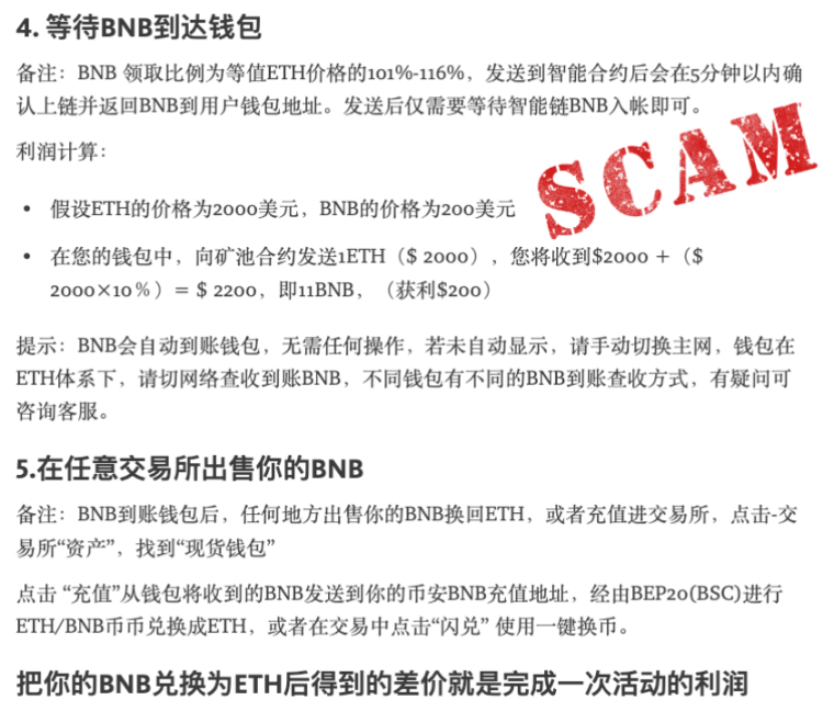 对于新手用户,骗子还贴心配备了详细的操作教程,教用户如何查看矿池质押情况、如何下载钱包以及如何把资金转入骗子的合约地址。利用流动性挖矿经济激励机制的假象,骗子成功吸引到用户投入资金。用户往合约地址打款后,收到了返利,便想投入更多的资金以获得更多的收益,此举正中骗子的圈套,最后用户投入的资金都被骗子卷走。