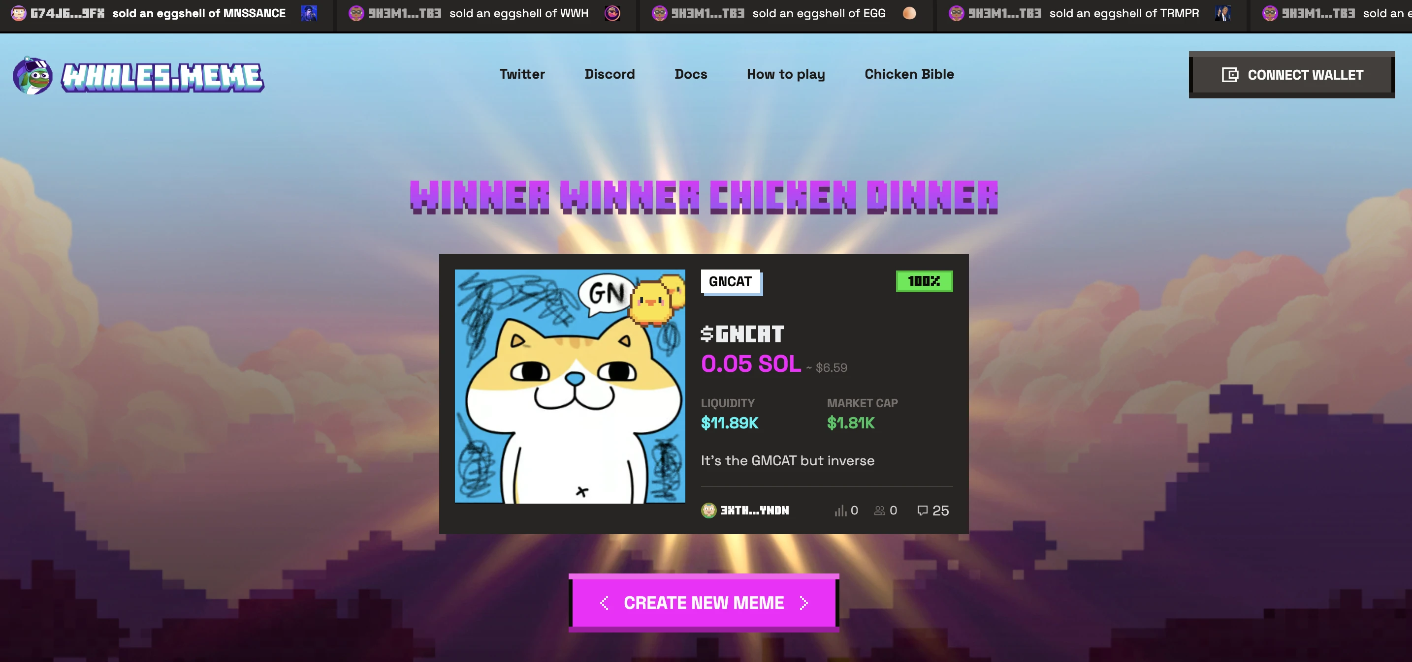 简介:由盘前交易市场 Whales Market 推出,得益于此前创始人 Dexter 的 gm.ai 项目及空投带来的关注,上线初期的 Meme 币 GMCAT 一度突破 300 万美元,但随后则逐渐泯然众人,再次说明只凭产品上的模仿抄袭,是无法在一键发币这个红海赛道中脱颖而出的。