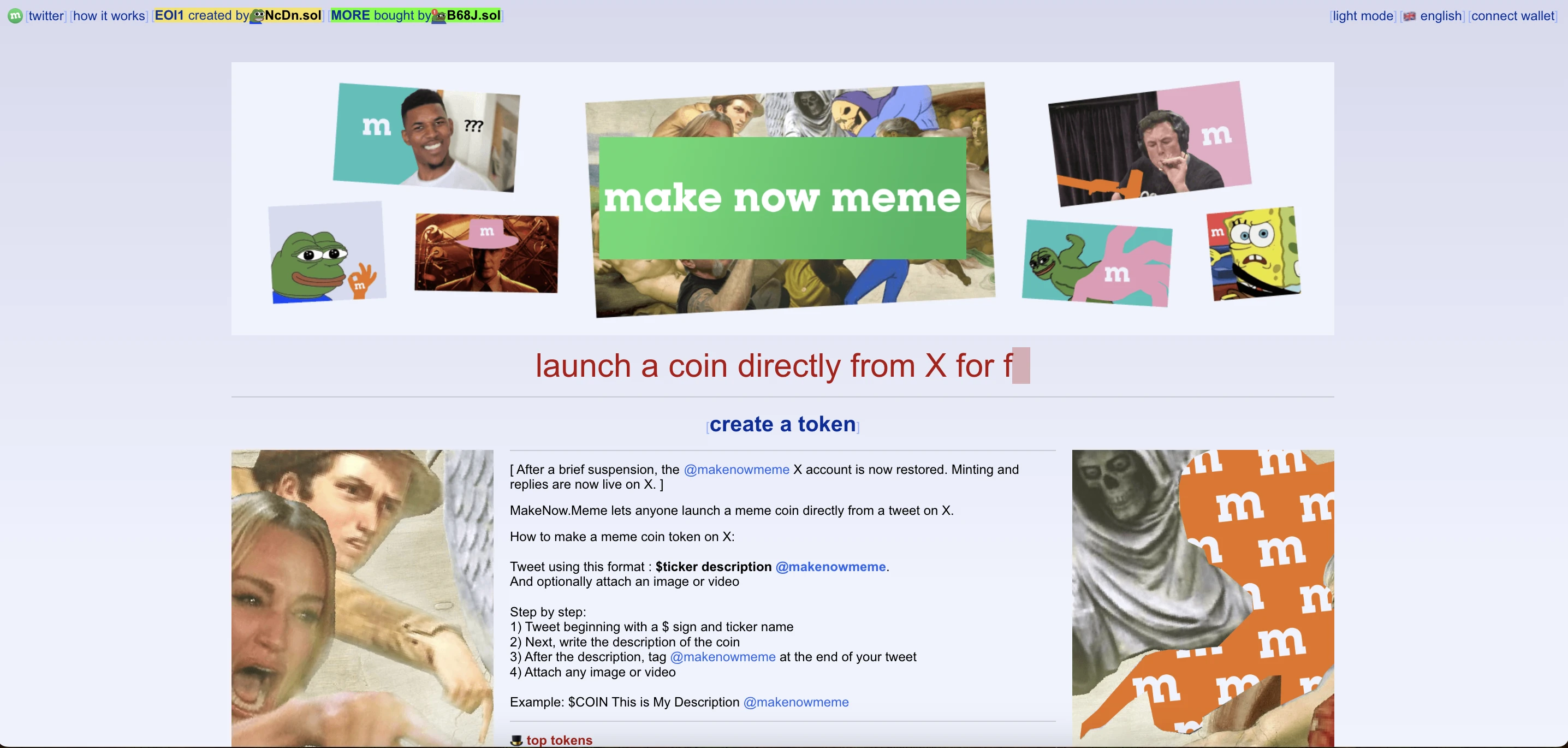 简介:该平台刚刚上线时也一度引发市场的高度关注,毕竟,仅仅发布一条推文便能够发布一个 Meme 币,可以说是将“一键发币”的门槛再次降低到了极致。此前Odaily星球日报作者南枳也曾在 《Meme 发射平台 MakeNow:发文即发币,用户与发币者统一起跑》 一文中对该平台及其机制创新点进行了详细介绍。但发币门槛低仍然无法保证平台能够持续吸引市场的注意力,毕竟,加密货币行业,流动性为王——哪里有流动性,哪里才有注意力。因而,最近该项目也逐渐沉寂下去—— 最新一条推文 停留在了 8 月 13 日.