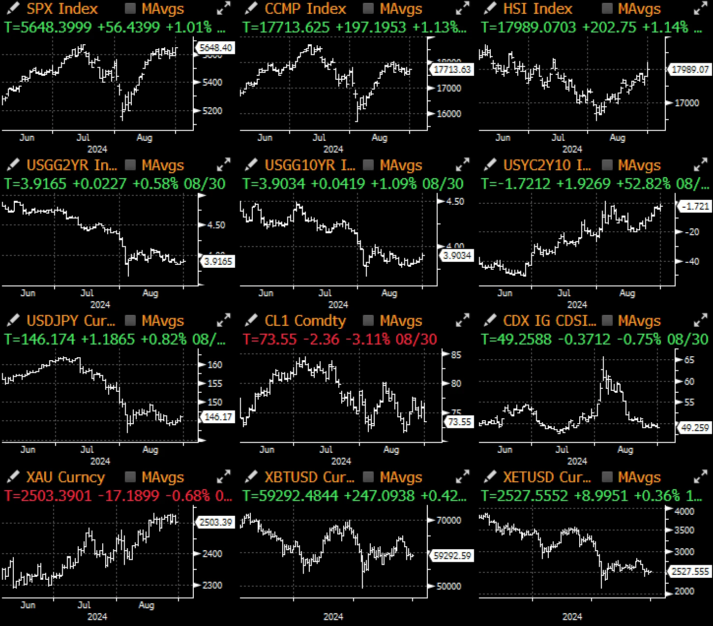 上周相对较为平静,全球股市基本回到了中期高点,而美债则在月底收于 8 月区间下限。数据提供了支撑,第二季度 GDP 被上调至 3.0% ,初请失业救济人数保持稳定,PCE 数据则证实了通胀正缓步向美联储的长期目标靠拢。