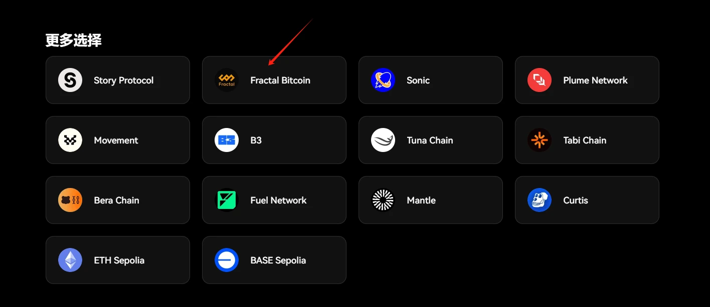 STEP 1. 进入测试网( 点击此处跳转链接 )、连接钱包、点击【Fractal Bitcoin Testnet】测试网络、点击确认。