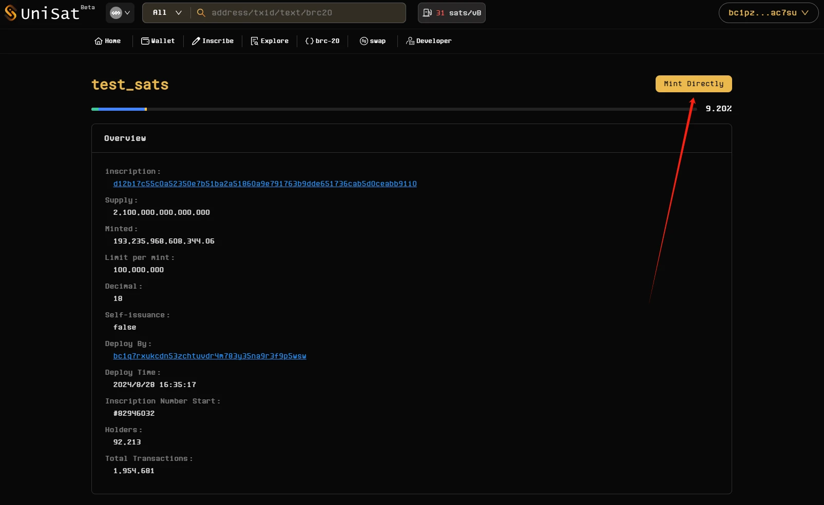 STEP 3. Mint test_sats( 点击此处跳转网站 )