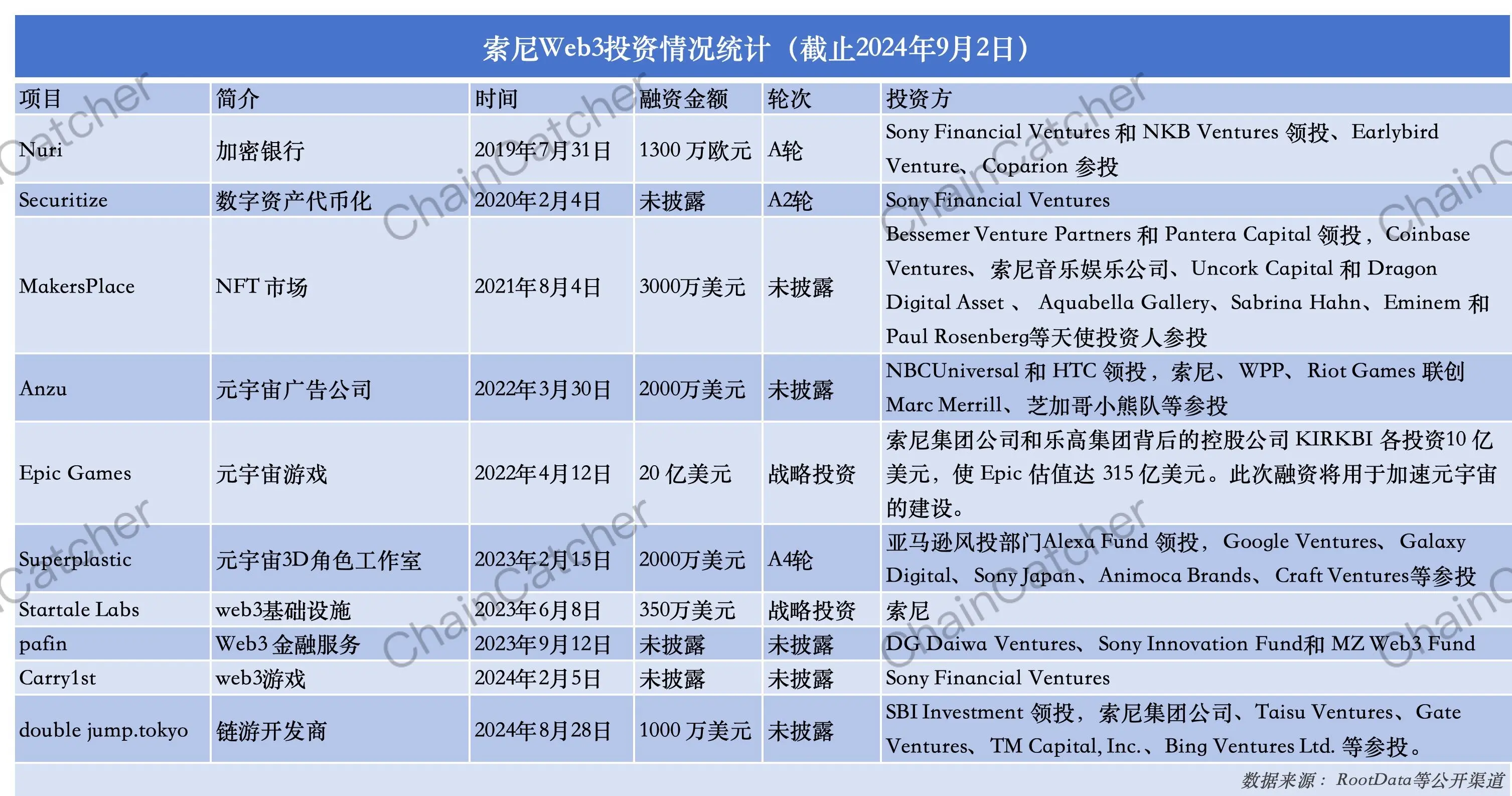 除了业务拓展层面探索Web3外,索尼也通过投资来布局Web3。