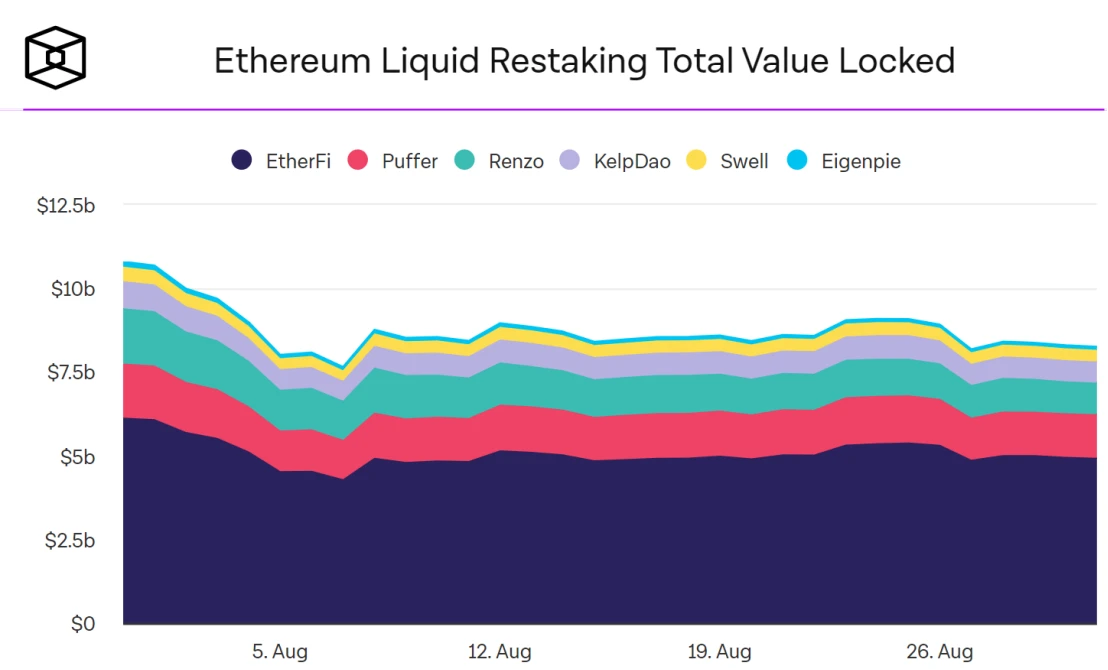 本周再质押板块迎来小幅走软,因上周市场走势低迷,DeFi 收益率下降,导致链上交易以及借贷活动减少,Restaking 收益率必然有一定的降低。