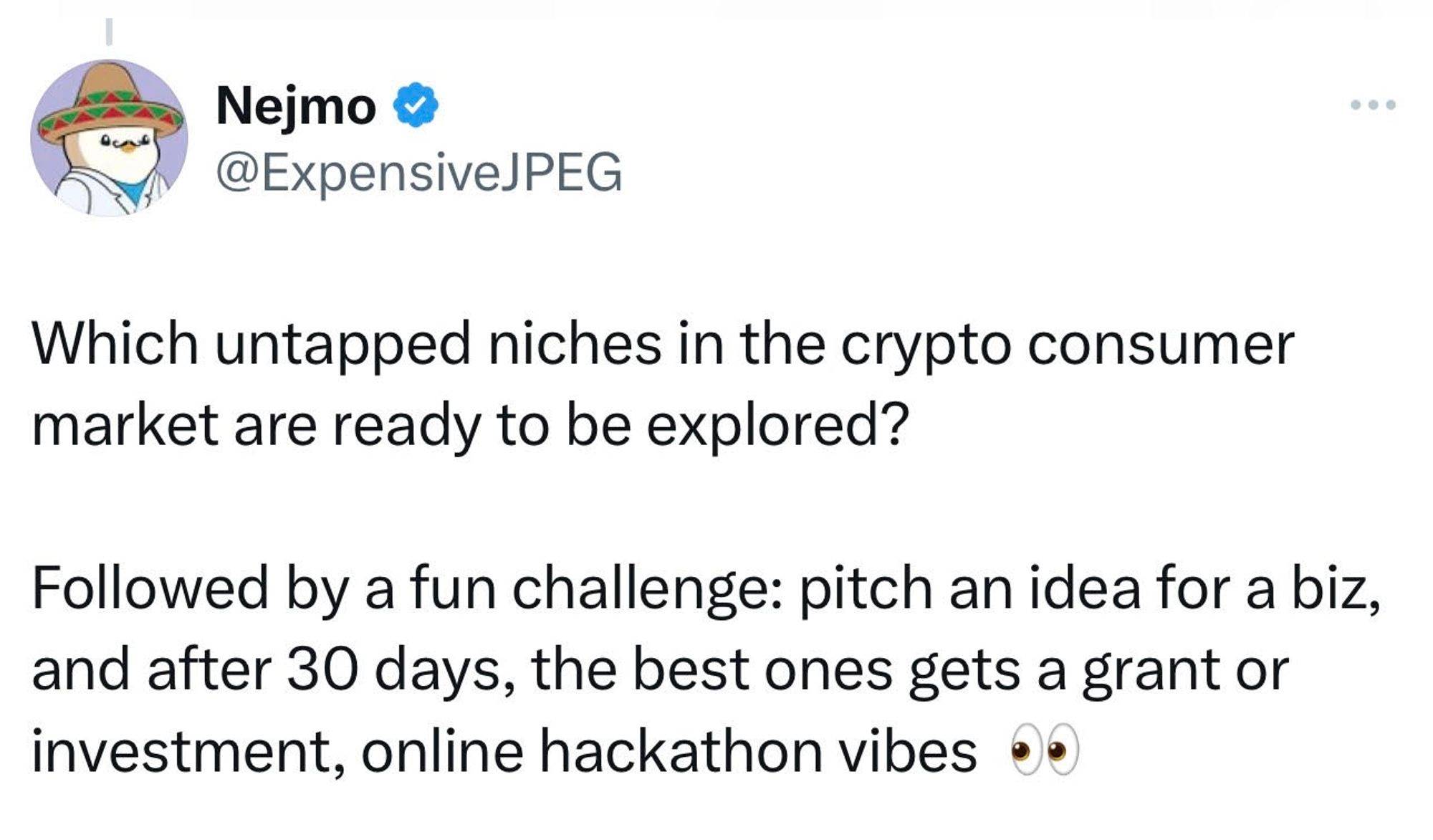 Nejmo @ExpensiveJPEG:在加密消费者市场中,有哪些尚未开发的利基市场值得探索?