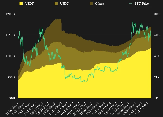在过去的一年中,稳定币的市值持续增长,推动了关键的市场走势。本评论探讨了 USDT、USDC 和 DAI 等主要稳定币的显著表现,同时也关注了 PYUSD 、 USDe 、 BitU 和 BUIDL 等快速崛起的参与者。