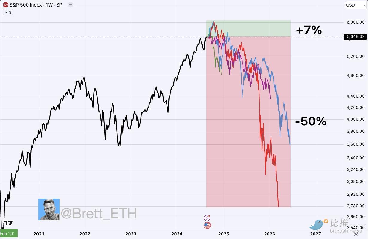 虽然投资者正热切等待首次降息,但加密数据分析师 Brett 在 X 平台提醒用户,历史数据表明,降息往往伴随着股价的大幅下跌,没有理由认为这次会有所不同。