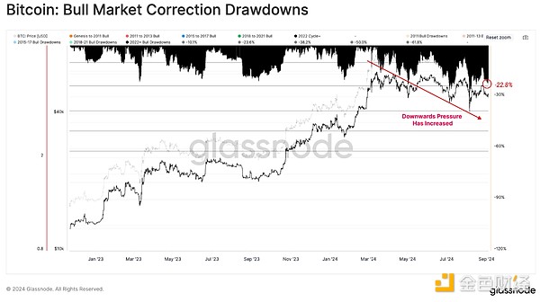 然而,从宏观角度来看,现货价格目前比历史最高价低 22% 左右,与历史牛市相比,下跌幅度相对较小。