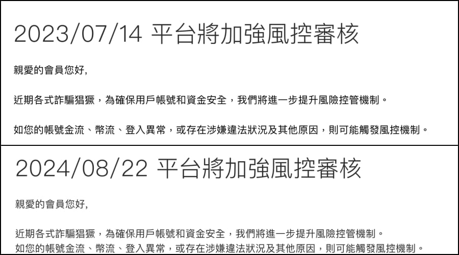 另值得注意的是,先前 Maicoin 在 7 月份和 8 月份时,都有特别公告,将加强平台的风控机制。