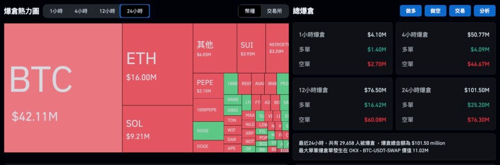 全网近 24 小时爆仓 1.01 亿美元