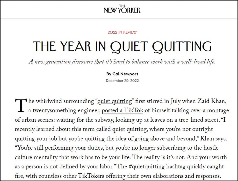 为了给大家铺垫一下背景,如果你不太熟悉 「悄然退出」 这个术语,它是一个相对较新的概念 ——