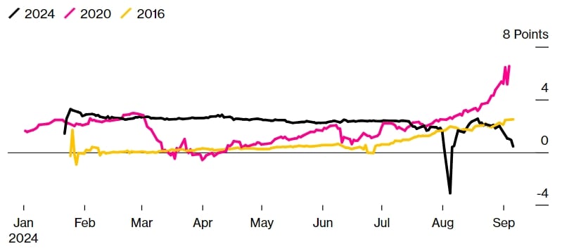 交易员还正等待周二的美国总统大选辩论,之后再对谁将赢得选举做出更具体押注,投资者将仔细分析候选人对关税、移民政策和企业税收等问题的立场。
