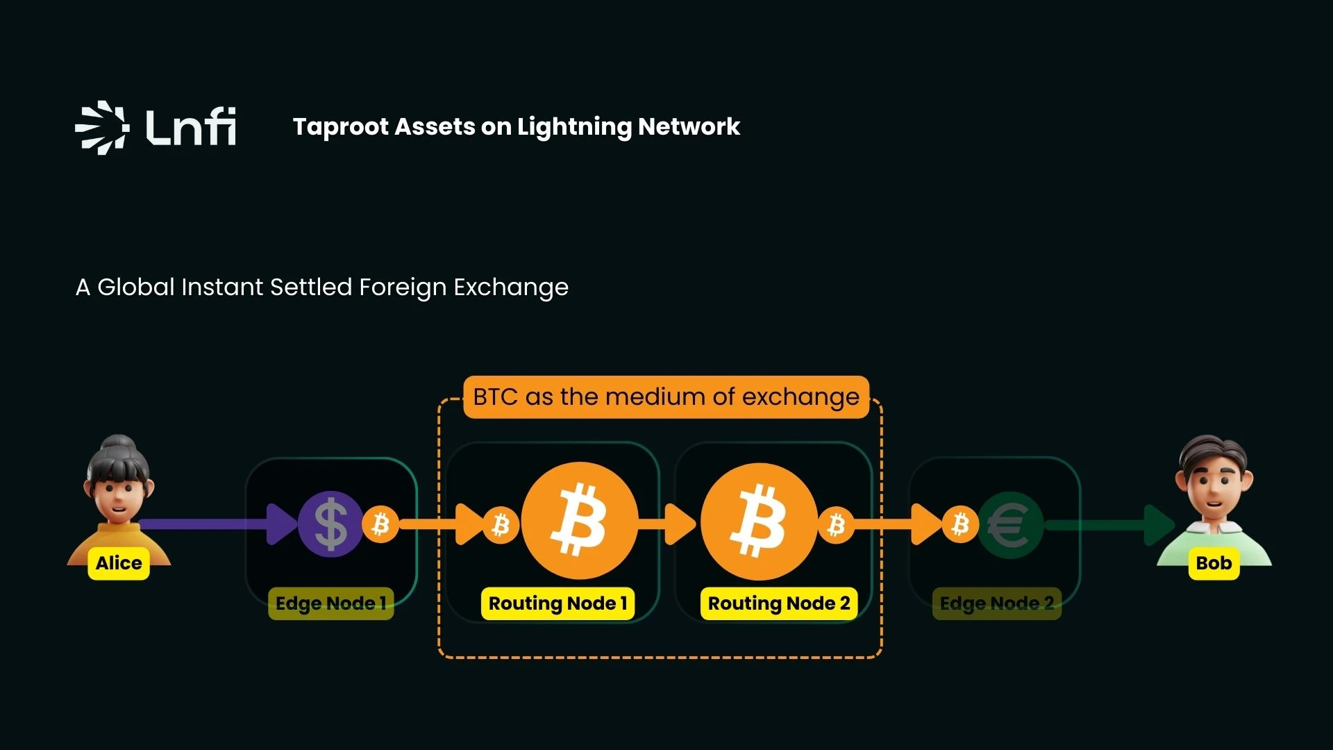 通过闪电网络,Alice 和 Bob 可以本地化地交换美元和欧元,这一过程是原子化的、去中心化的、安全的和即时的。相比之下,传统金融系统会收取 2-5% 的高额费用,并需要几天时间来结算类似的交易。闪电网络的开放性允许任何人成为边缘节点或路由节点,从而压低价差和费用,为用户提供最具竞争力的汇率。