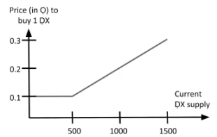 代币成本取决于流通中的代币数量(如单位代币价格=代币供应量²)