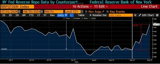 BitMEX 联合创始人 Arthur Hayes 在 X 发文称,降息不会对比特币带来短期利好,因逆回购协议 (RRP) 在这一动态中有调节作用。目前 RRP 利率为 5.3% ,高于 4.38% 的国库券收益率。Hayes 认为,利率差会导致大型货币市场基金将资本从国库券转移到 RRP,从而减少可用于加密货币等风险较高投资的资金量。