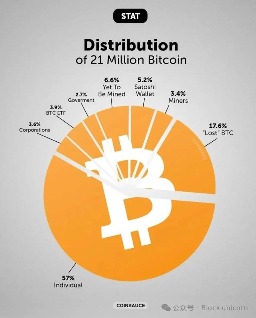 人们通常认为,与以太坊相比,比特币更多地被机构采用。然而,数据显示情况并非如此,比特币主要由个人投资者驱动, 57% 的供应量由个人持有,而只有 9.7% 由机构(包括矿工)持有。我对「个人投资者」的定义是非专业投资者和个人,他们更有可能因为新市场的投机性质而被转化为比特币的应用用户。
