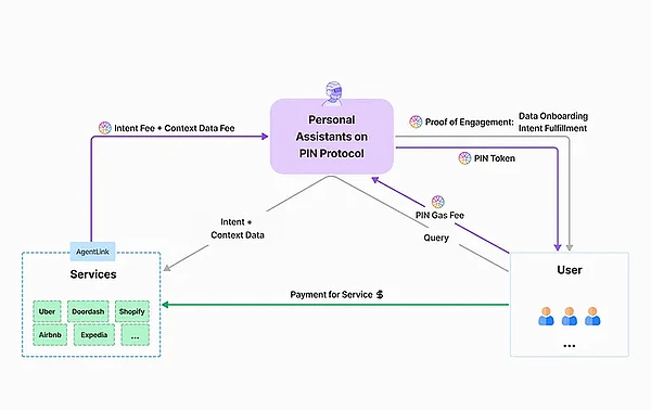 毕竟日常生活需求大多时候需要金钱交易,在 PIN AI 中,资金流向应是: