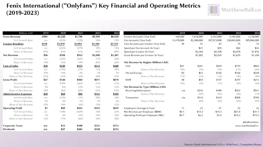 虽然是一家私企,但作为英国公司,OnlyFans 仍需公开部分业务和运营数据。尽管信息有限,但足够让我们窥见其收入、利润、规模及市场地位。