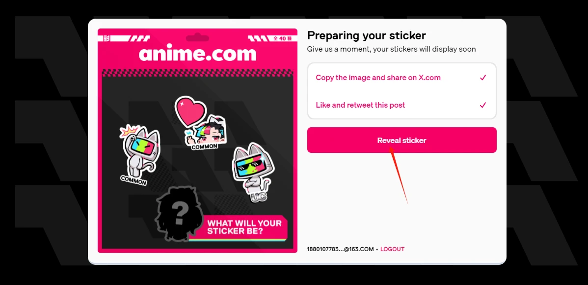 STEP 3. 复制已抽取的 NFT 头像并转发到 X 平台,同时转推、点赞 Azuki 官推对 Anime.com 宣传推文即可再获得一次抽取 NFT 的机会。