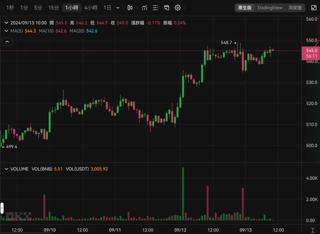 BNB 突破 540 美元、TON 攀高 5.6 美元