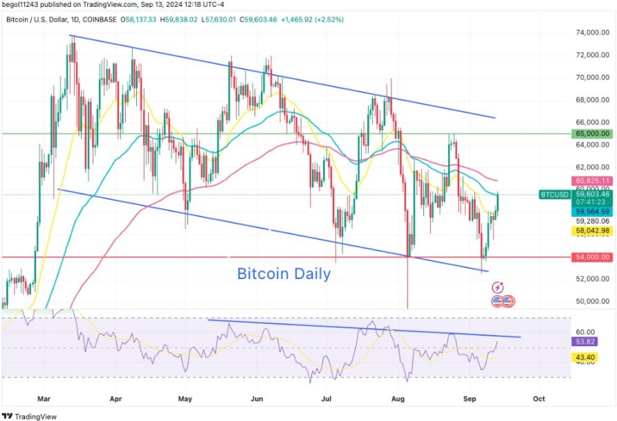 Pizzino 在 YouTube 节目更新中表示:「如果我们开始看到一些测试,并在短期内收于 58, 000 美元上方,这可能是一个不错的早期反弹,接下来将测试我分析中更重要的水平 61, 500 美元左右,这是 3 月至 8 月 50% 的调整幅度,这是比特币测试、克服和巩固的下一个关键水平,基本上是牛市的下一阶段,推向新的历史高点。」
