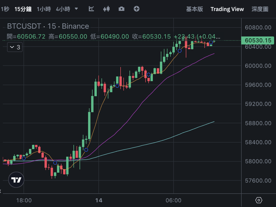 比 特币价格在昨(29)日持续在 5.8 万美元水平震盪,不过自晚间 8 点 30 分后𫔭啟一路上行,在今晨约 5 点拉回到 6 万美元上方,撰稿当下触及 60,530 美元,近 24 小时上涨 4.46 %。
