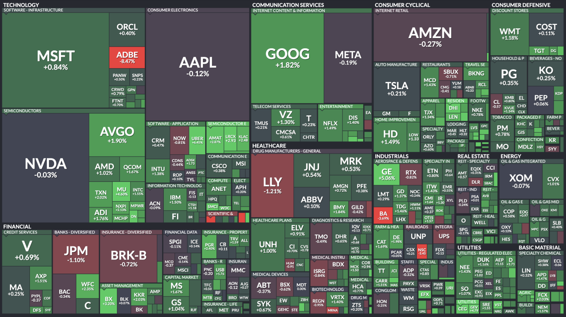 - 道琼指数上涨 297.01 点,或 0.72%,收 41,393.78 点,本周累涨 2.6%