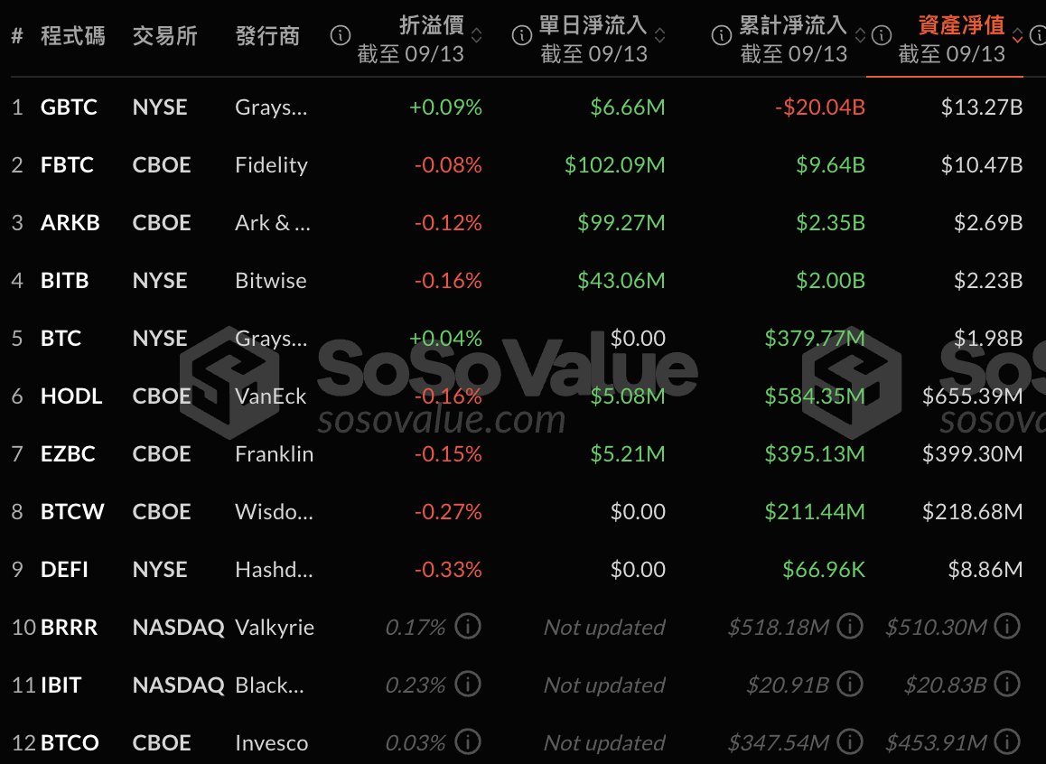 在比特币单日涨近 5% 的同时,比特币现货 ETF 也出现亮眼数据。SoSo Value 数据 显示,比特币现货 ETF 昨(13)日总净流入 2.6 亿美元(截至目前更新的数据),其中富达的 FBTC 更单日吸金逾 1.02 亿美元,创下 7 月 19 日以来单日资金净流入新高。