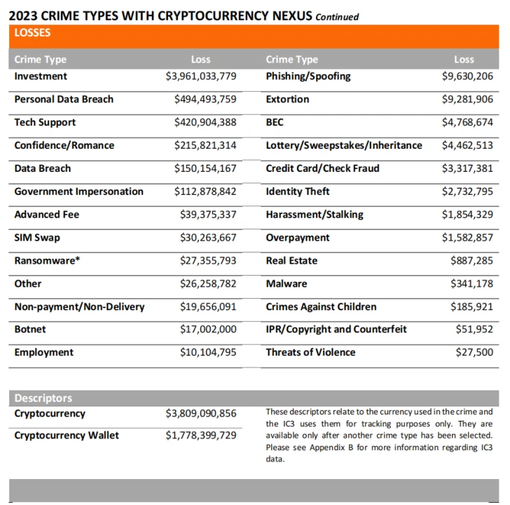 2023 年加密货币相关的损失较 2022 年增长了 45% 。