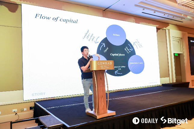 活动上,Story Protocol Head of IPFi BU FAN 围绕着 IPFi 为主题发表了演讲。 Bu Fan 将 IPFi 定义为:于 IP 领域支持金融市场活动(存储和转移资产价值),建设开放无需可的金融生态。