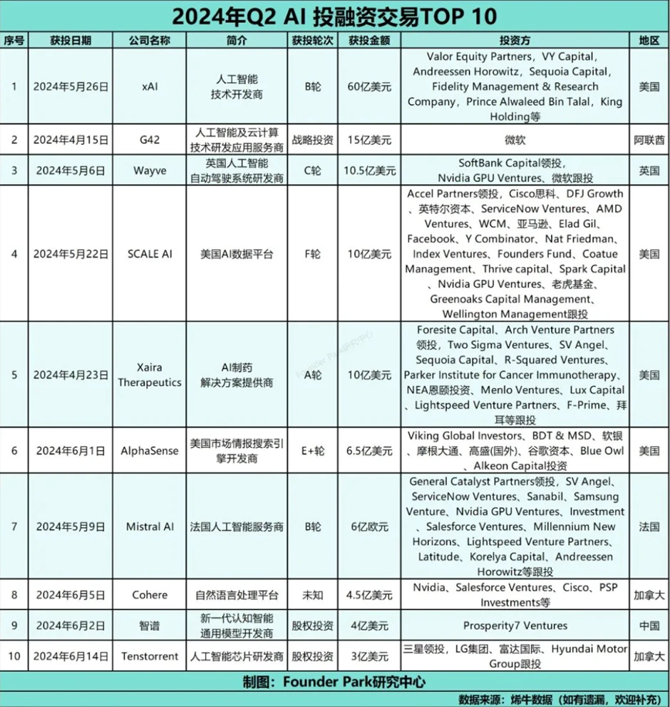 2024 Q2 AI 赛道融资 TOP 10