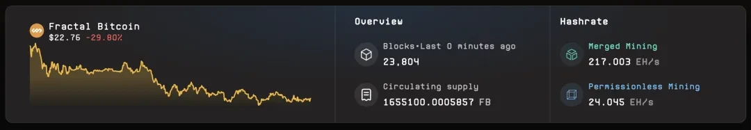 Fractal Bitcoin 价格及算力一览,来源:UniSat Explorer, 2024 年 9 月 16 日