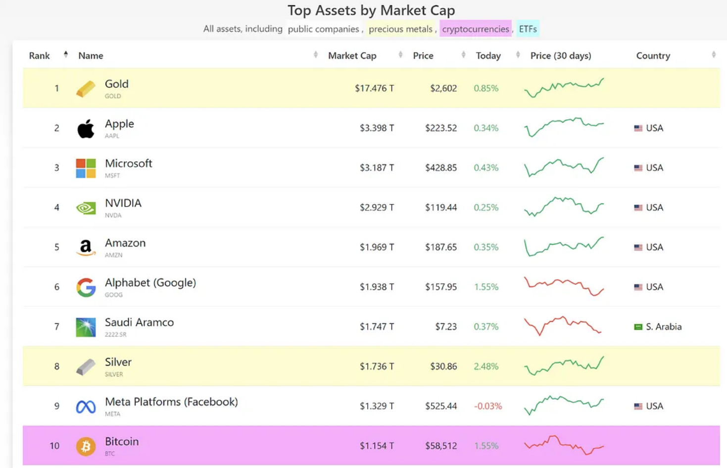如果我们将 2019 年初到 2021 年初视为牛市的开始,比特币的价格在 4000 到 10000 美元之间,而以太坊则在 130 到 330 美元之间。当时,加密市场的整体规模较小,增长空间充足。然而,根据 CompaniesMarketCap 的数据,目前比特币市值全球排名第十,仅次于 Facebook,相较于苹果还有约三倍的增长潜力,相较于黄金则有约十五倍的潜力。这次的增长预期小于上一个周期。