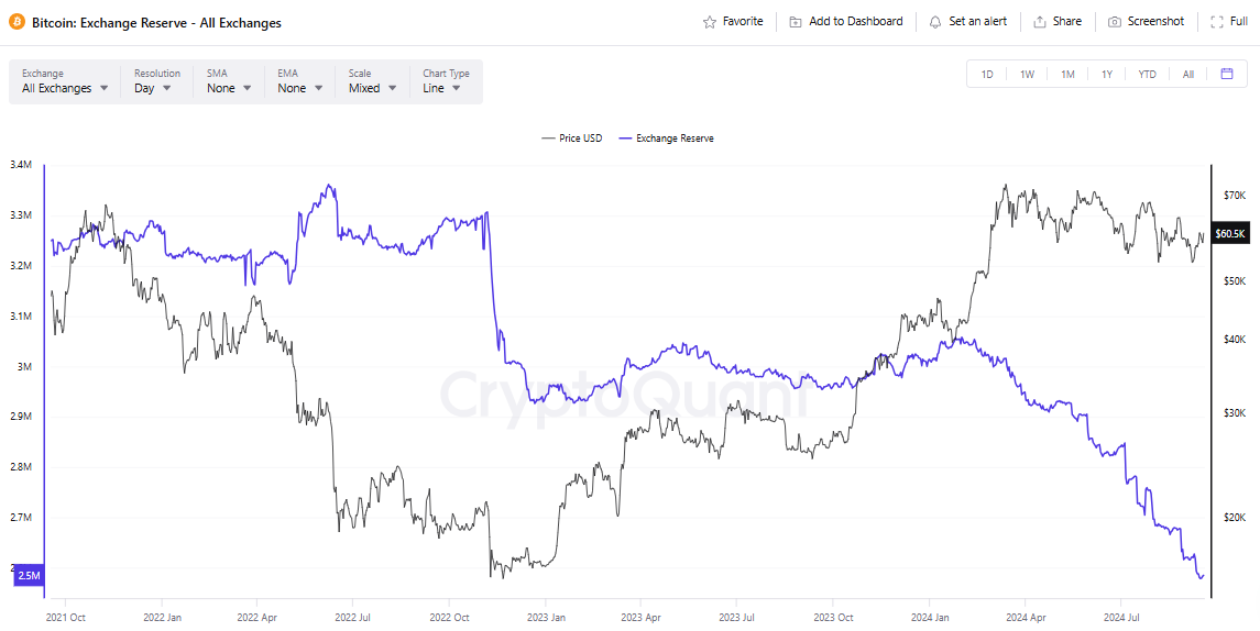 比特币插针6.1万美元创九月新高,交易所BTC存量持续下滑