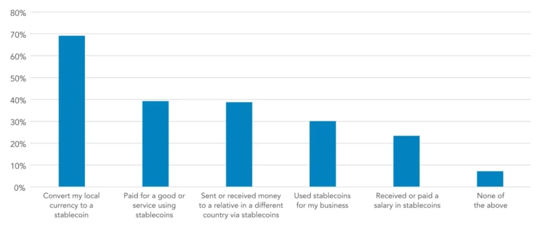 调查结果很明确:在接受调查的国家中,非加密货币用途占稳定币使用模式的很大一部分。